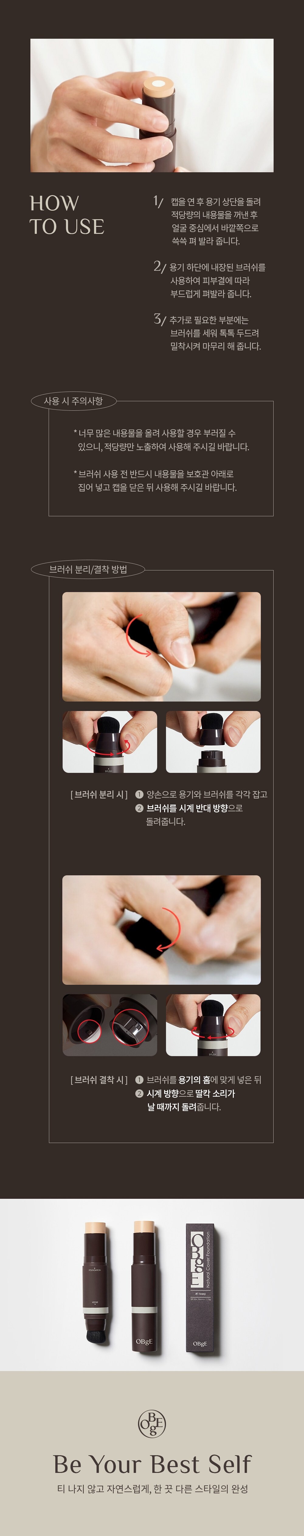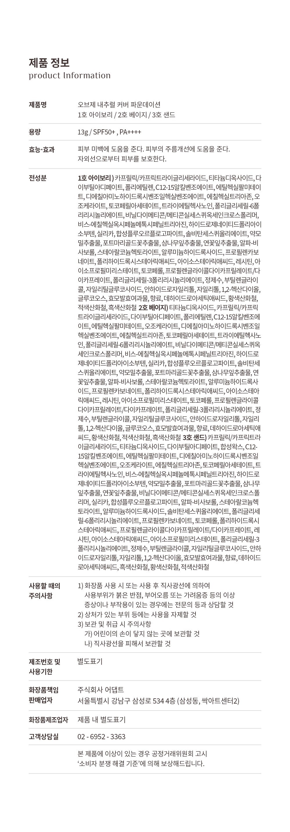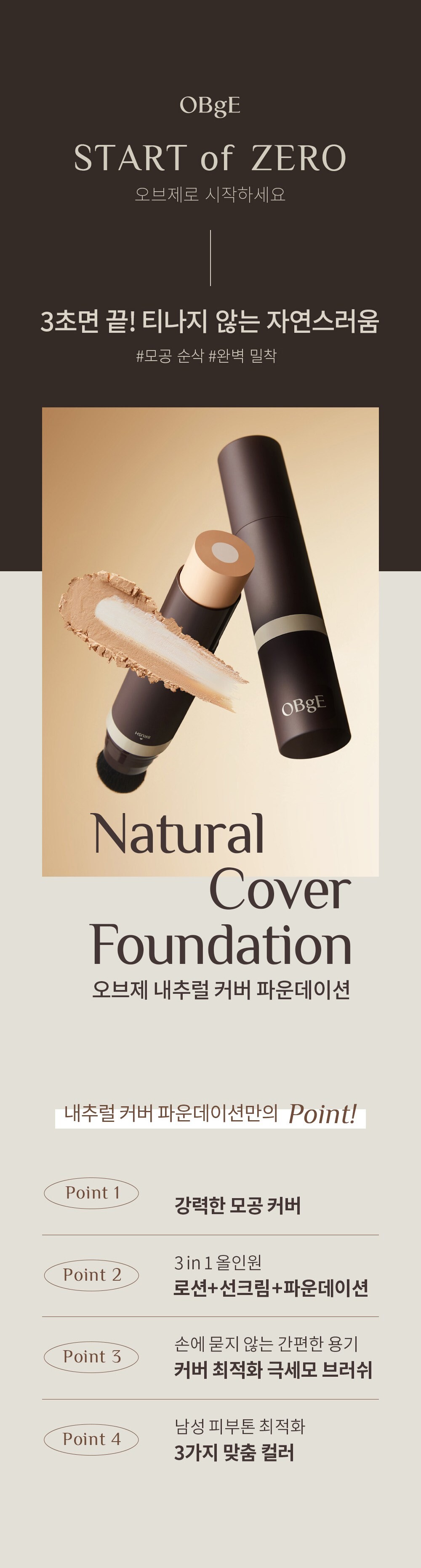 OBge Natural Cover Foundation SPF50+ PA++++ 13g, No. 3 Sand, 1ea